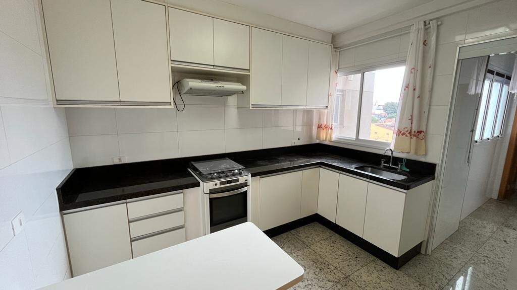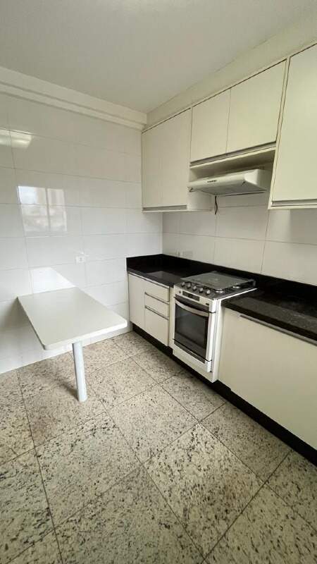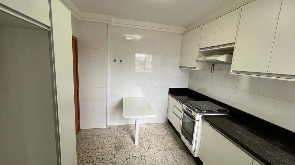 - Cozinha planejada com pia de granito, gabinete, armários, fogão e exaustor