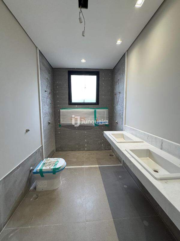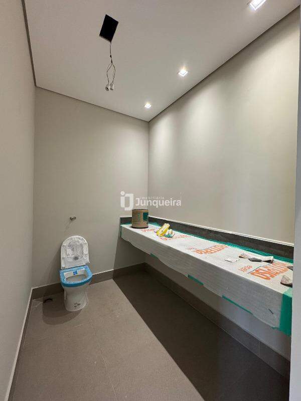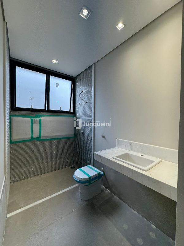 Detalhes do acabamento incluem pisos Incepa de 1,20 x 1,20 metros na cozinha, sala, área gourmet, área de serviço, dispensa, lavabo e nos banheiros das 3 suítes. Na garagem e dispensa, os pisos são de 0,90 x 0,90 metros.