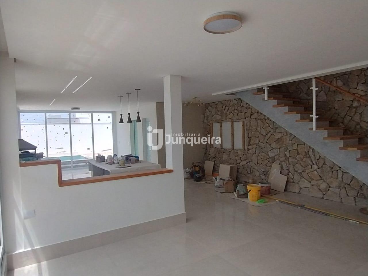 - No piso térreo encontra-se sala 02 ambientes integrada cozinha, lavabo, escritório, despensa, lavanderia, área de lazer com churrasqueira, piscina, banheiro externo e 2 vagas de garagem