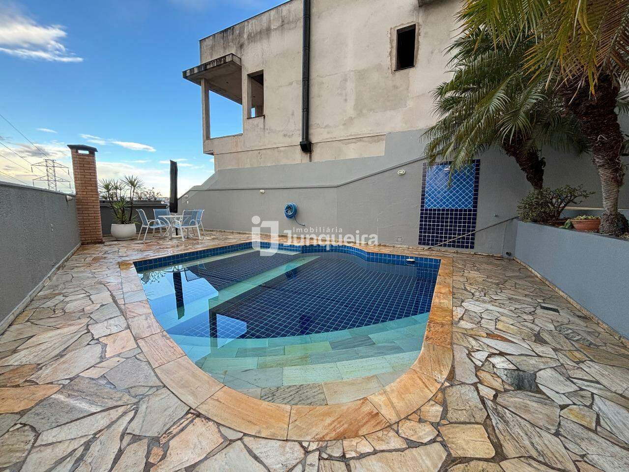 - Área externa com piscina e chuveirão
