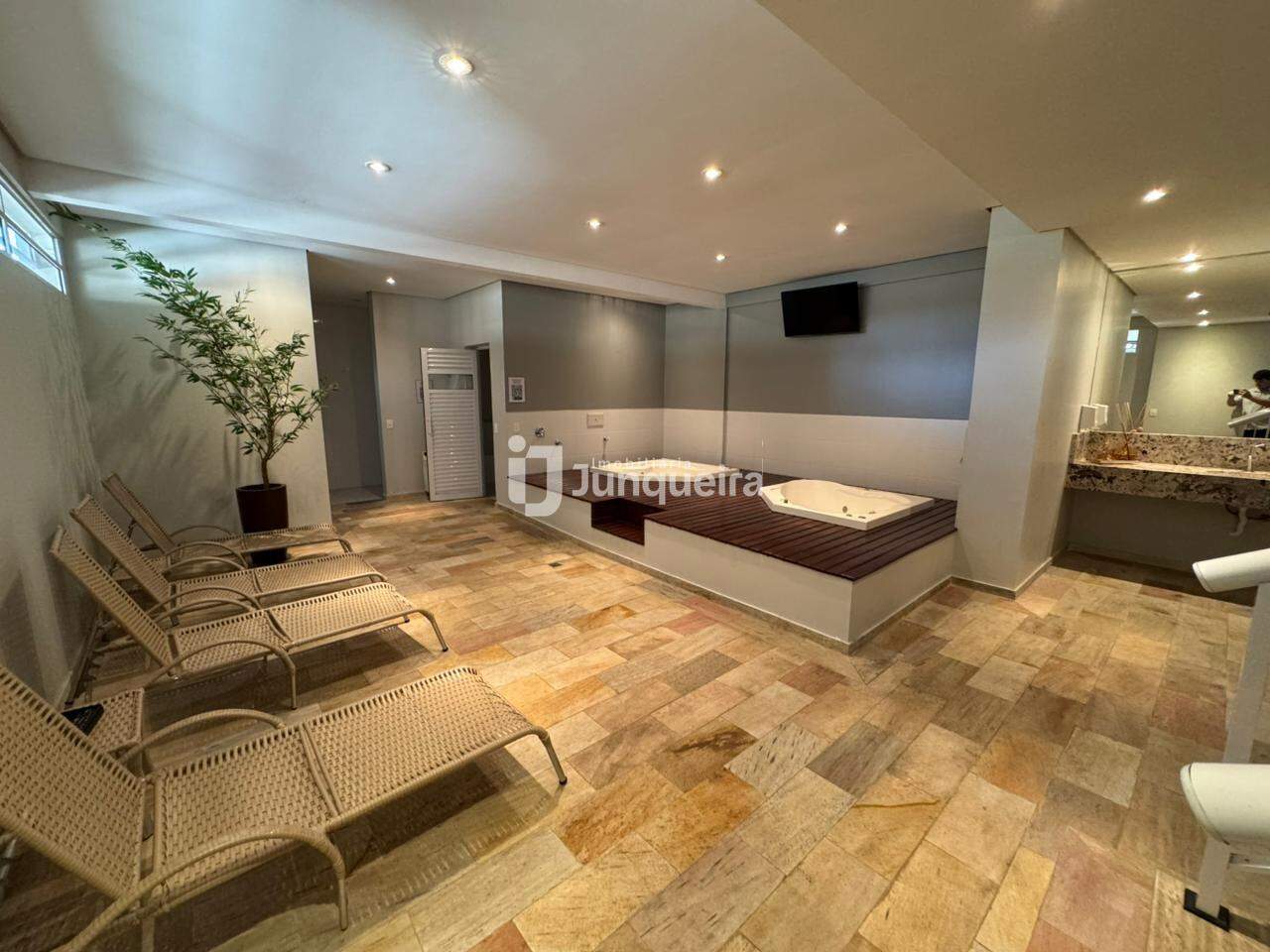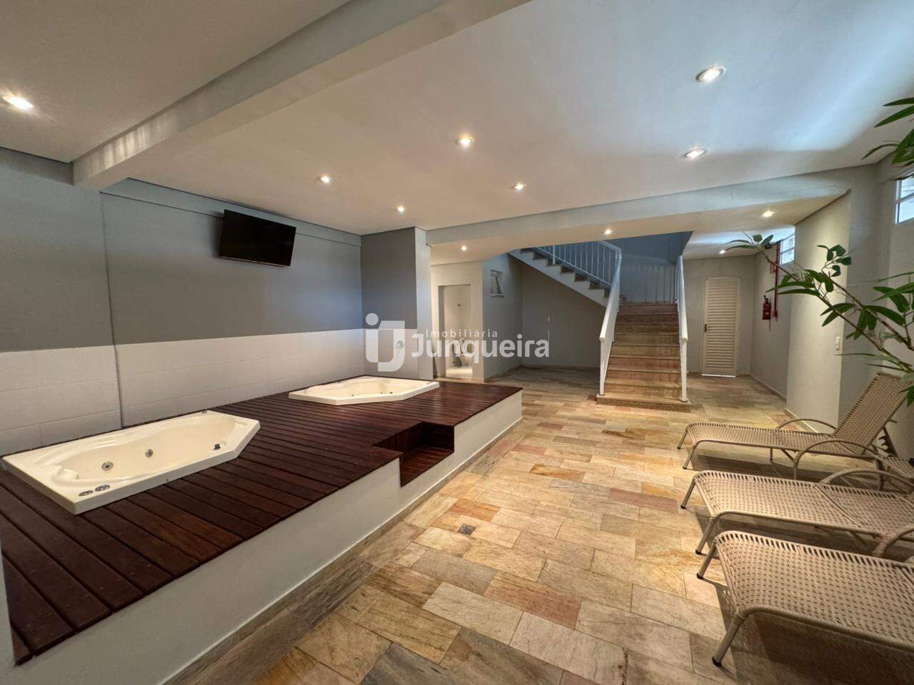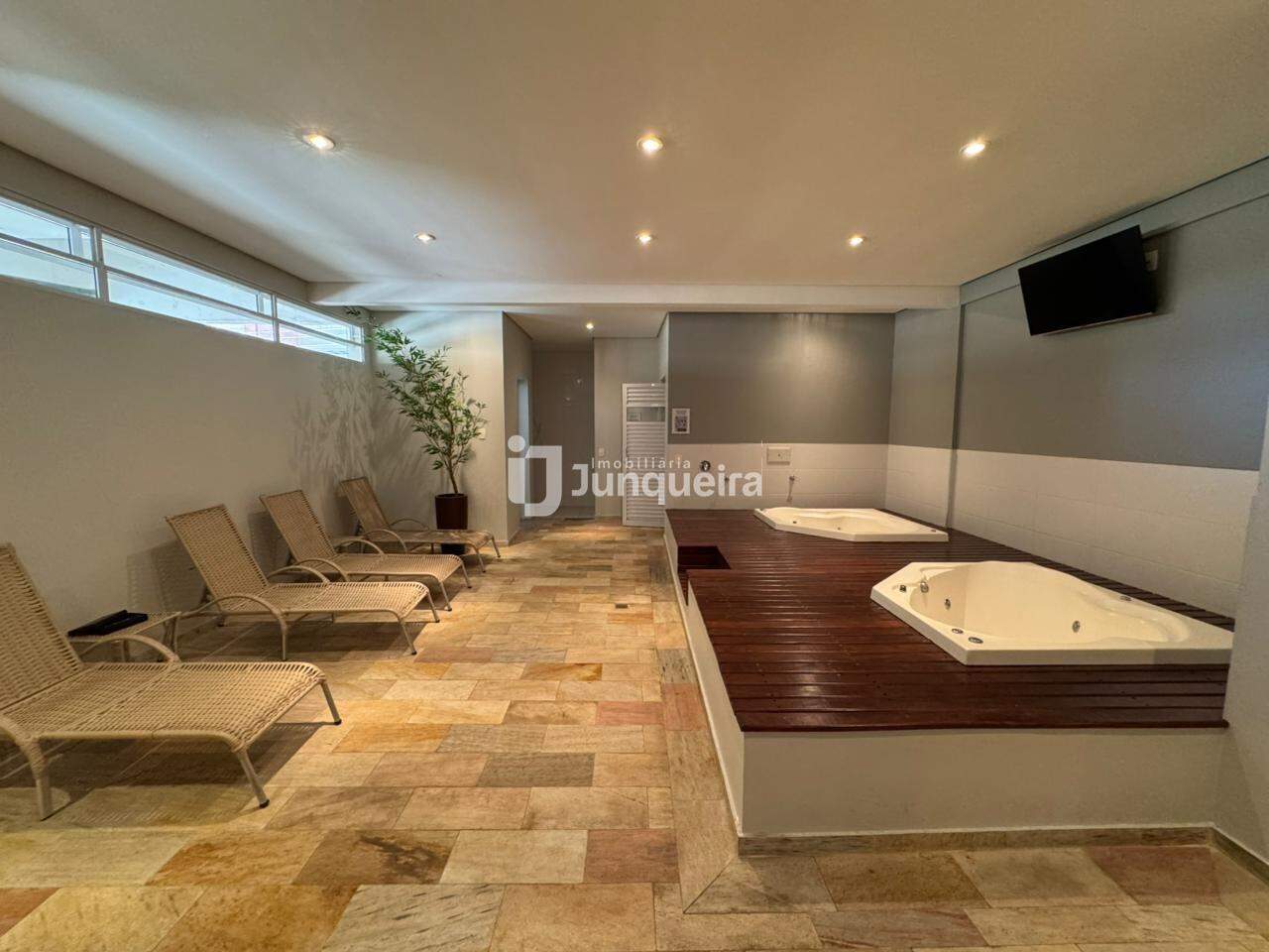 Condomínio oferece, academia, salão de festas, sala de jogos, sauna com sala de massagem, quadra poliesportiva, quiosque com churrasqueira e playground.